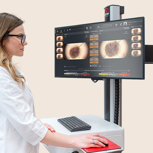 Durch den Vergleich und das Überblenden von Aufnahmen lassen sich selbst kleinste Veränderungen frühzeitig erkennen. Ergänzend dazu tragen Body Mapping Folgeaufnahmen und auflichtmikroskopische Kontrollen zur präzisen Früherkennung auffälliger Hautveränderungen bei.